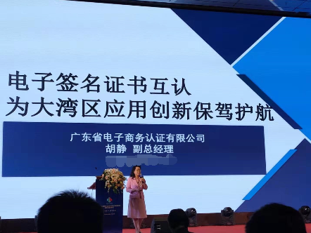 網證通副總經理胡靜以《電子簽名證書互認為大灣區應用創新保駕護航》為主題進行演講